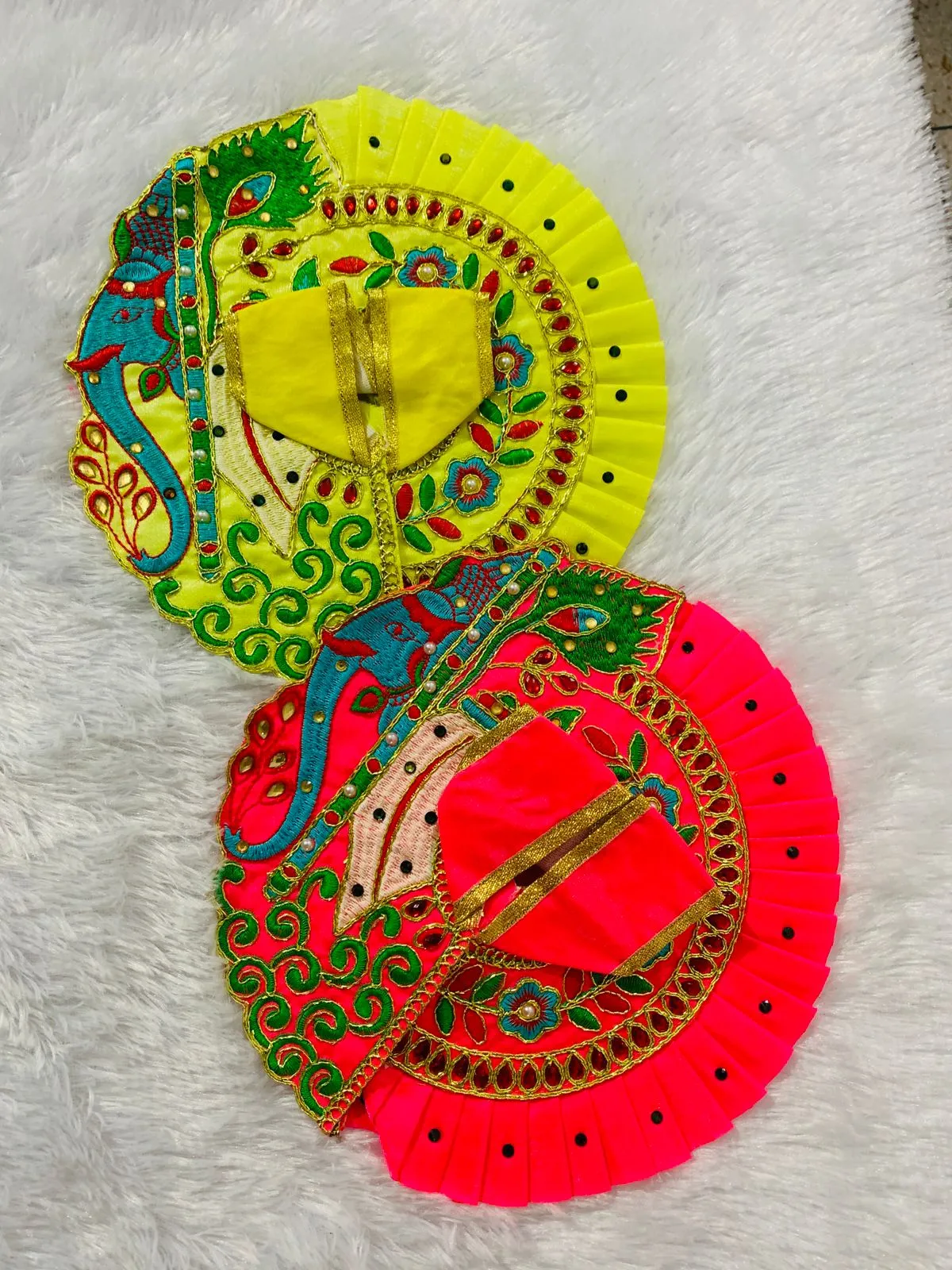 Soft cotton Laddu Gopal dress with elegant Surat pattern and net border, perfect for daily wear and festive occasions. Lightweight, comfortable, and beautifully handcrafted.